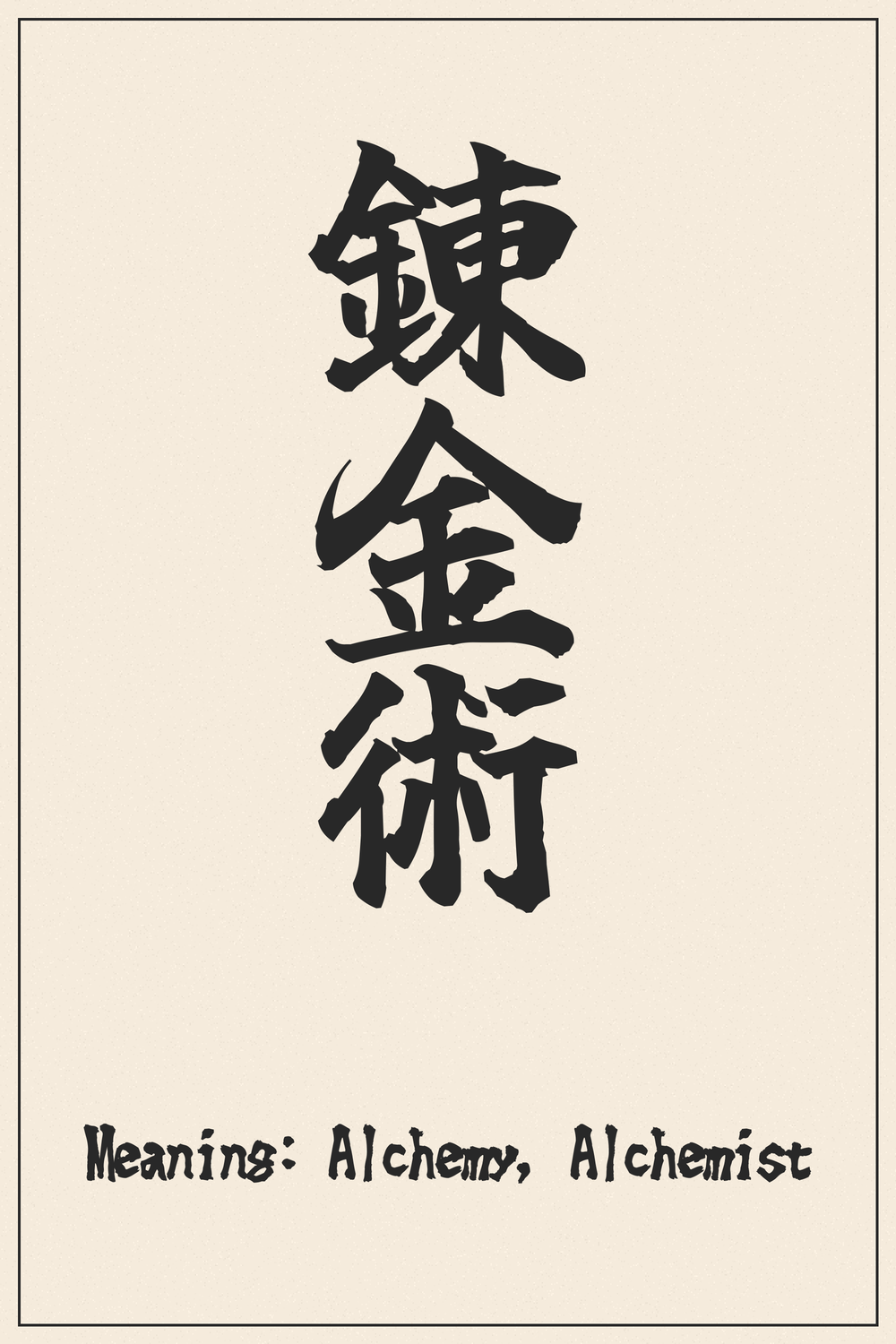 The compound 錬金術 is formed from three distinct and meaningful Kanji, each contributing to its rich interpretation: