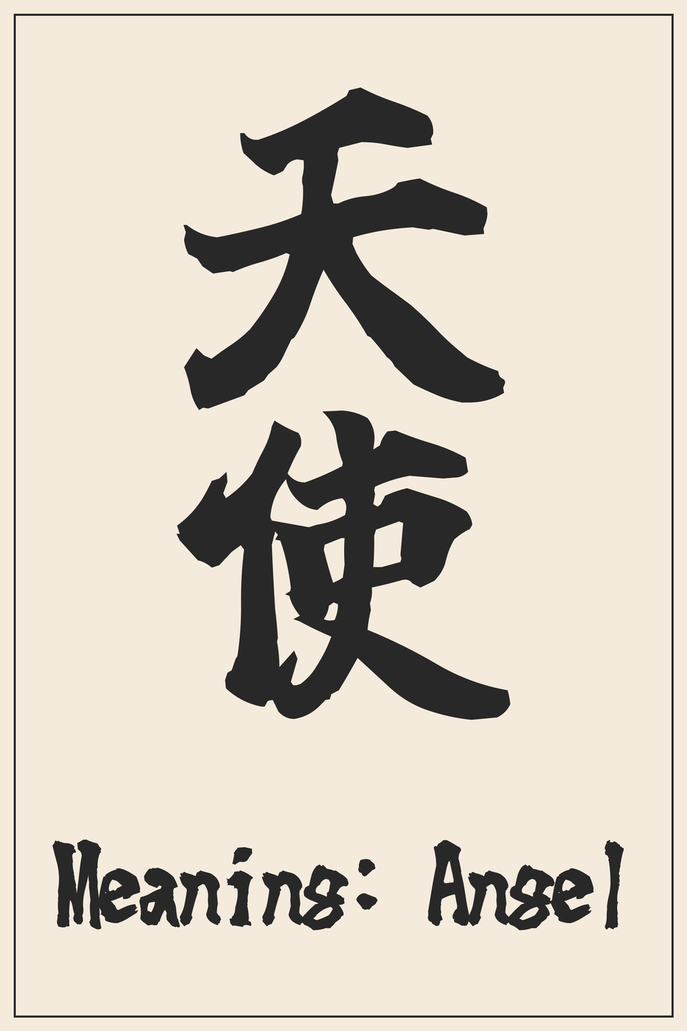 The Kanji 天使 (Tenshi) encapsulates the essence of an angel: a pure, benevolent being sent from the heavens to guide and protect. It represents hope, divine connection, and spiritual purity.