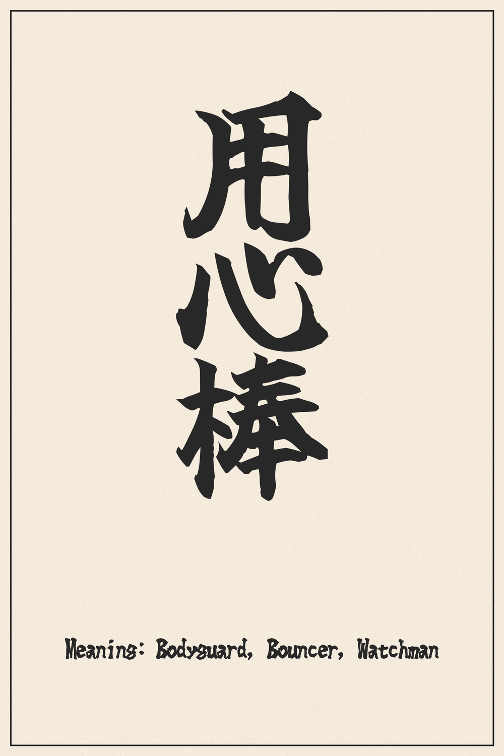 The Kanji compound 用心棒 (Youjinbou) powerfully embodies the essence of protection and unwavering vigilance. It is a symbol for those who stand guard, offering security and strength in the face of adversity.
