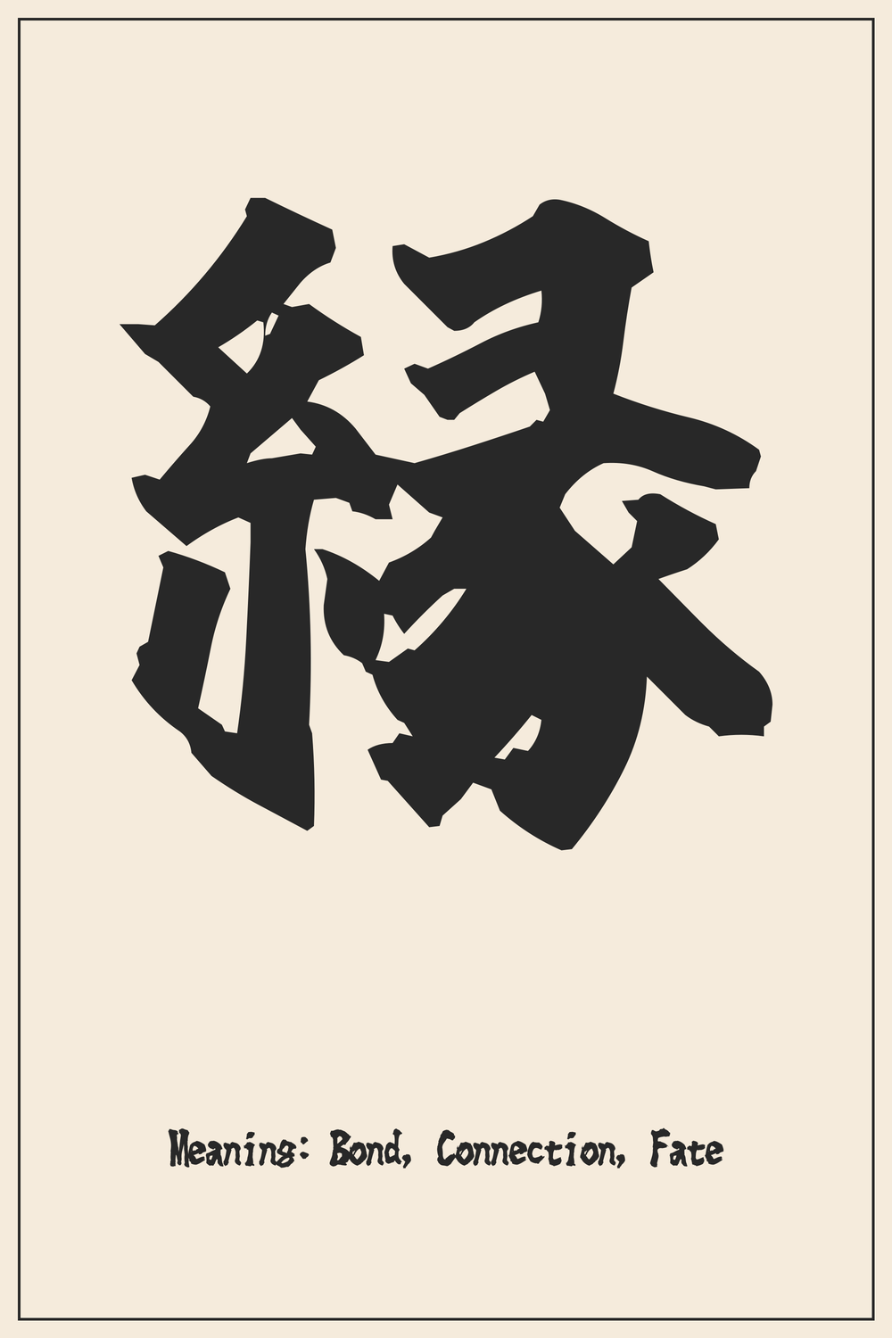 The Kanji 縁 encapsulates the profound concept of connection, fate, and serendipitous encounters in Japanese culture. It represents the invisible threads that link people and events, shaping our lives and relationships.