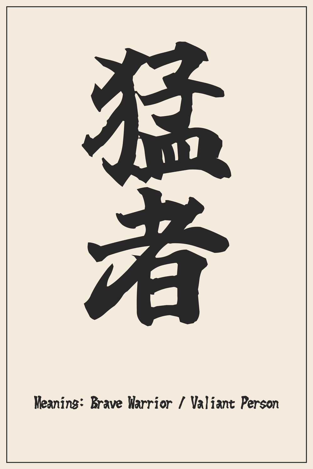 The Kanji ‘็่ ’ embodies the spirit of a fierce and valiant individual, a true warrior who faces challenges with unwavering courage. It’s a powerful symbol for those who exemplify strength and heroism.