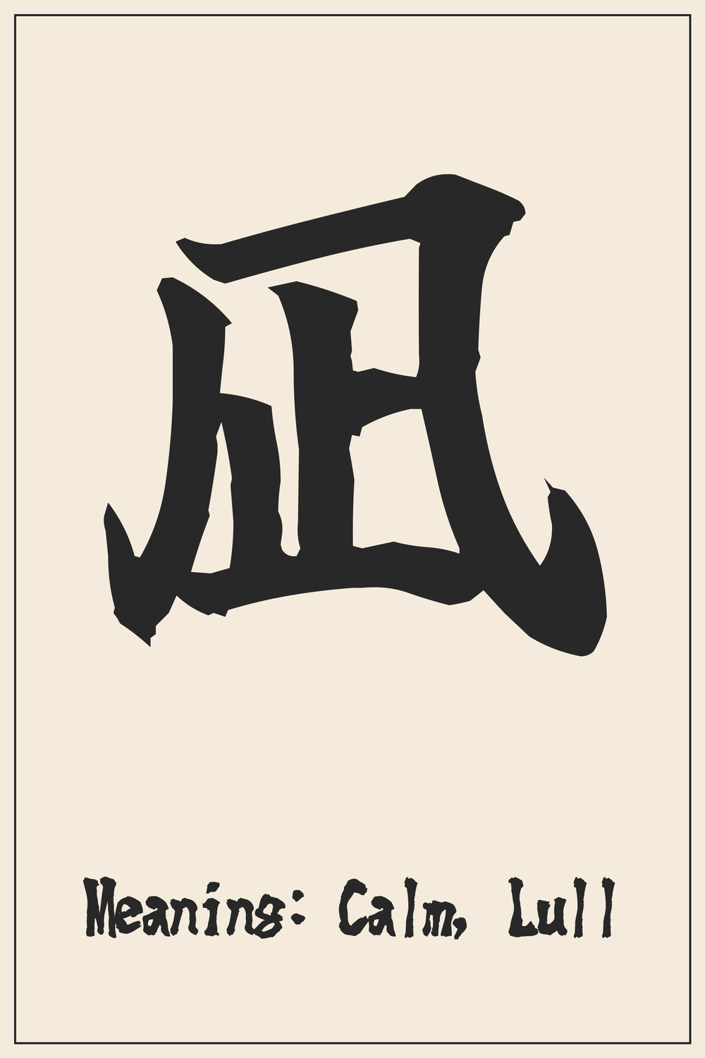 The Kanji 凪 is a profound symbol of calm and stillness, particularly embodying the peace found when the elements of nature, like the wind, come to a rest. It represents a state of serenity, whether in the natural world or within oneself.