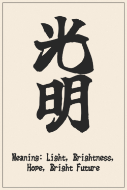 光明 (Light, Brightness, Hope, Bright Future) – Japanese Kanji Design