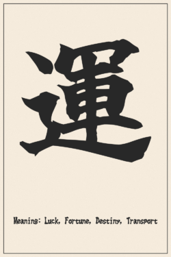 運 (Luck, Fortune, Destiny, Transport) – Japanese Kanji Design