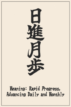 日進月歩 (Rapid Progress, Advancing Daily and Monthly) – Japanese Kanji Design