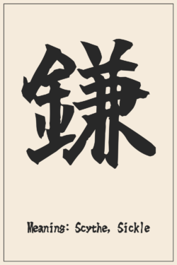 鎌 (Scythe, Sickle): Meaning & Origin – Japanese Kanji Design
