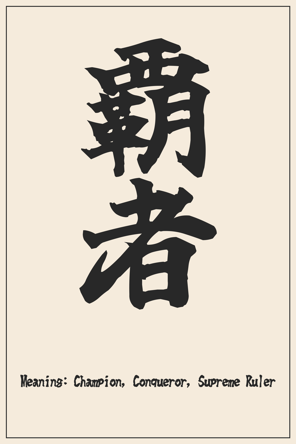 The Kanji compound 覇者 embodies the spirit of ultimate triumph and leadership. It represents an individual who has risen above all challenges to claim supremacy.