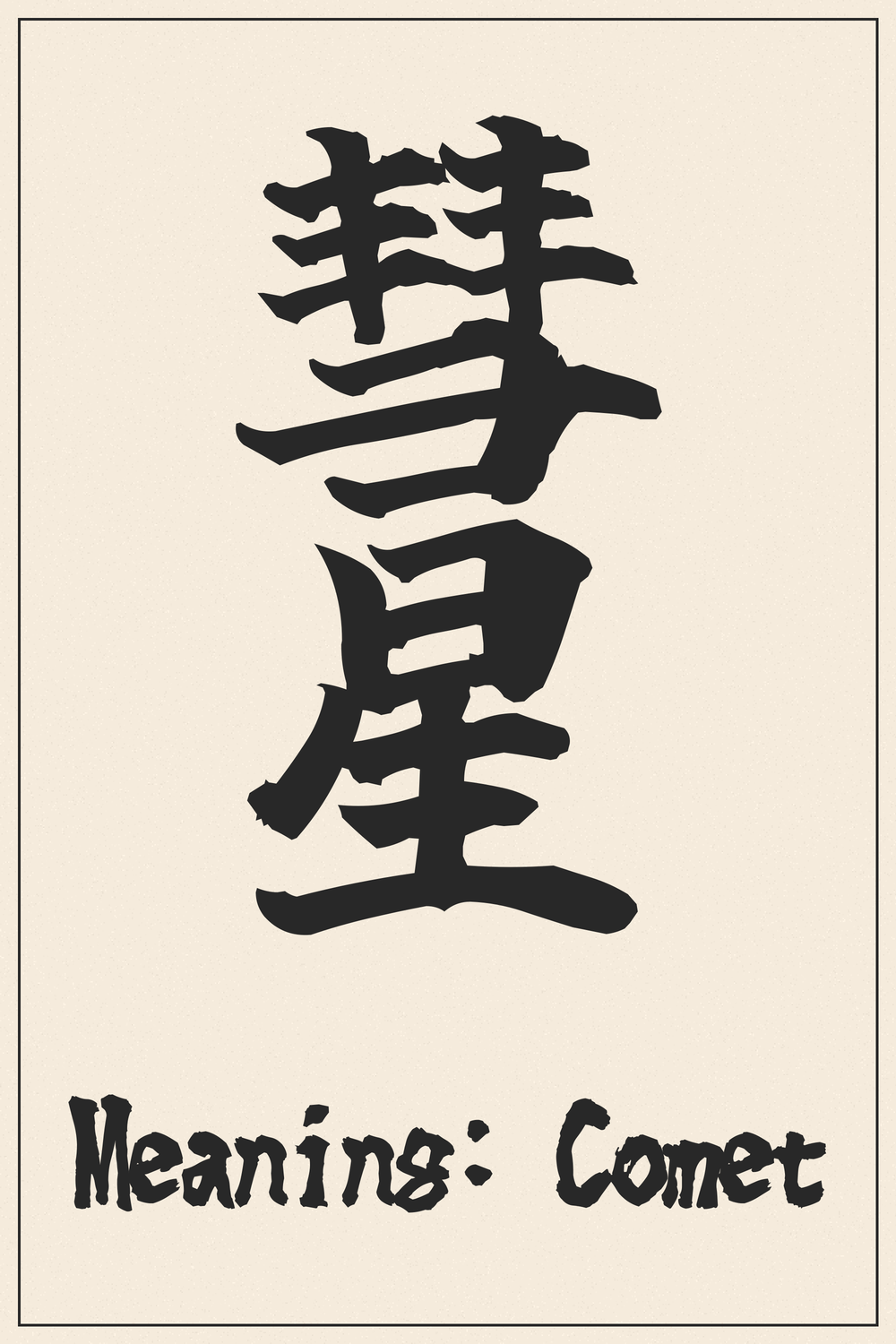 Explanation: This character originally depicted a broom, suggested by the phonetic component, and was later borrowed to represent a comet due to the visual similarity of a comet’s tail to a broom’s bristles or a sweeping motion across the sky. It embodies the essence of “sweeping star.”