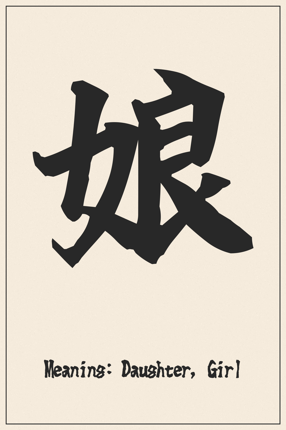 The Kanji 娘 is more than just a word for ‘daughter’; it is a symbol rich with cultural warmth and personal significance. It represents the cherished bond within a family, the beauty of youth, and the hope embodied by the next generation.