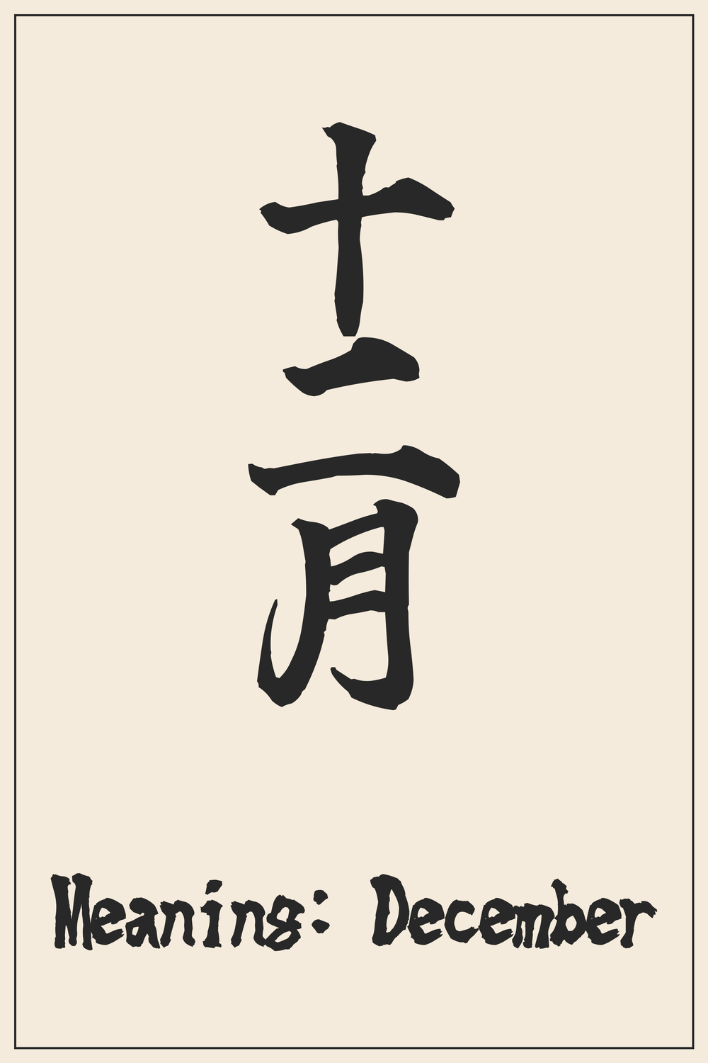 The Kanji ‘十二月’ encapsulates the essence of the twelfth and final month of the year. It signifies a period often associated with reflection, conclusion, and seasonal change.