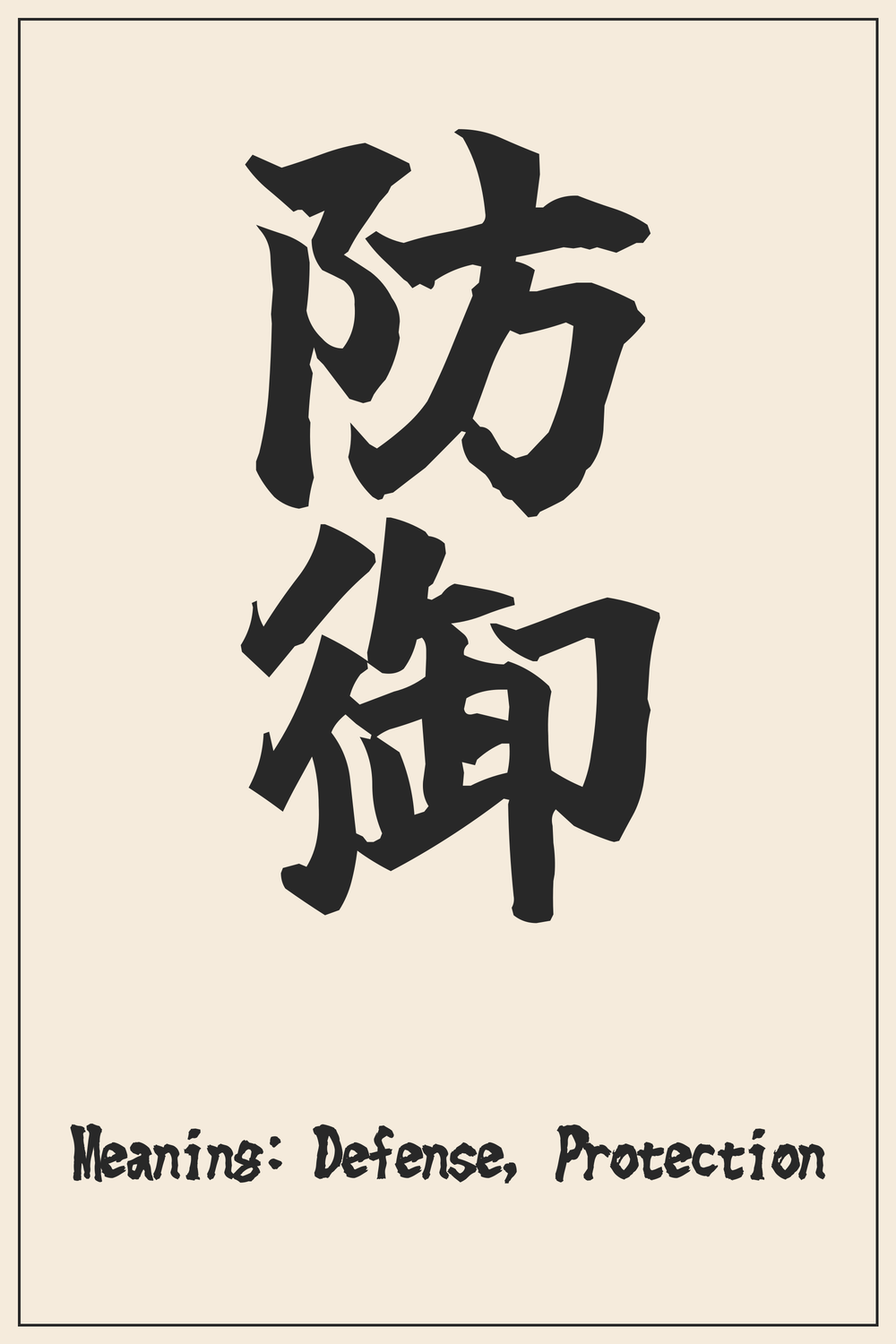 防御 (Bōgyo) powerfully encapsulates the essence of defense and protection. It’s a symbol of strength, preparedness, and the unwavering will to safeguard oneself, one’s beliefs, or one’s loved ones.
