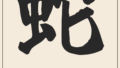 The character 鬼 (oni) has ancient origins, believed to be a pictograph depicting a fearsome, large-headed entity with a human-like body. Its earliest forms often emphasize a monstrous mask or face atop a figure, embodying the idea of an unseen, powerful spirit or being.