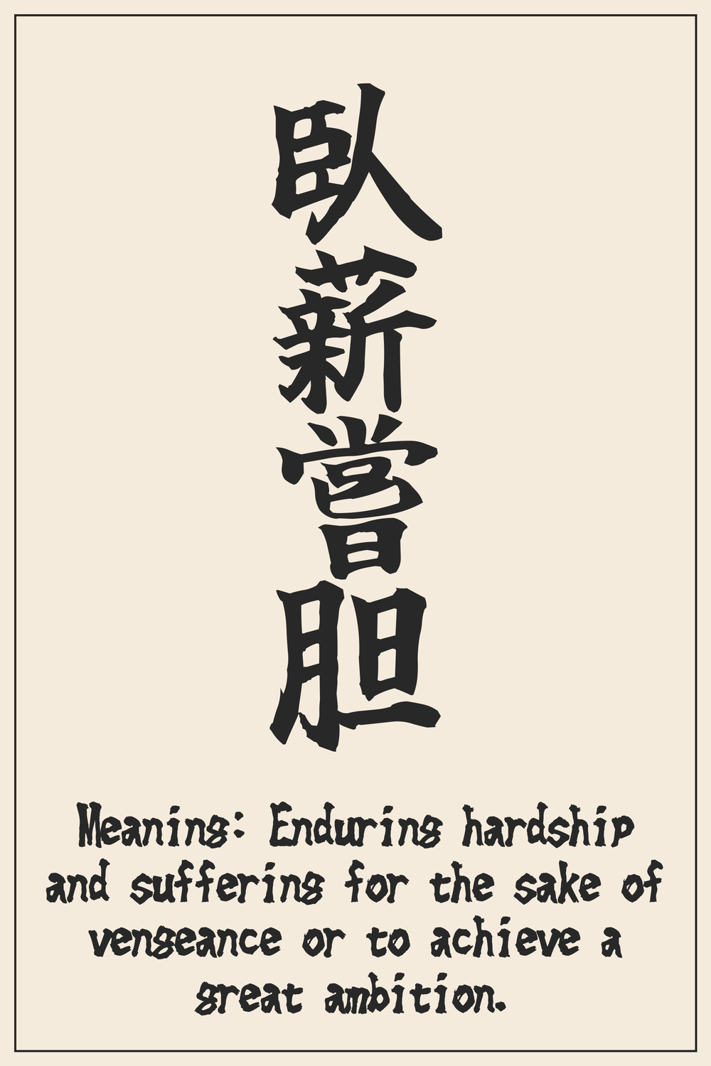 The profound meaning of Gashinshōtan is derived from the combination of four distinct kanji, each contributing to the idiom’s powerful narrative of endurance and resolve.