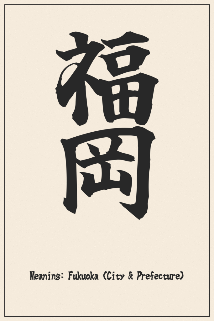 - 福岡 (Fukuoka (ciudad y prefectura)) – Diseño kanji japonés