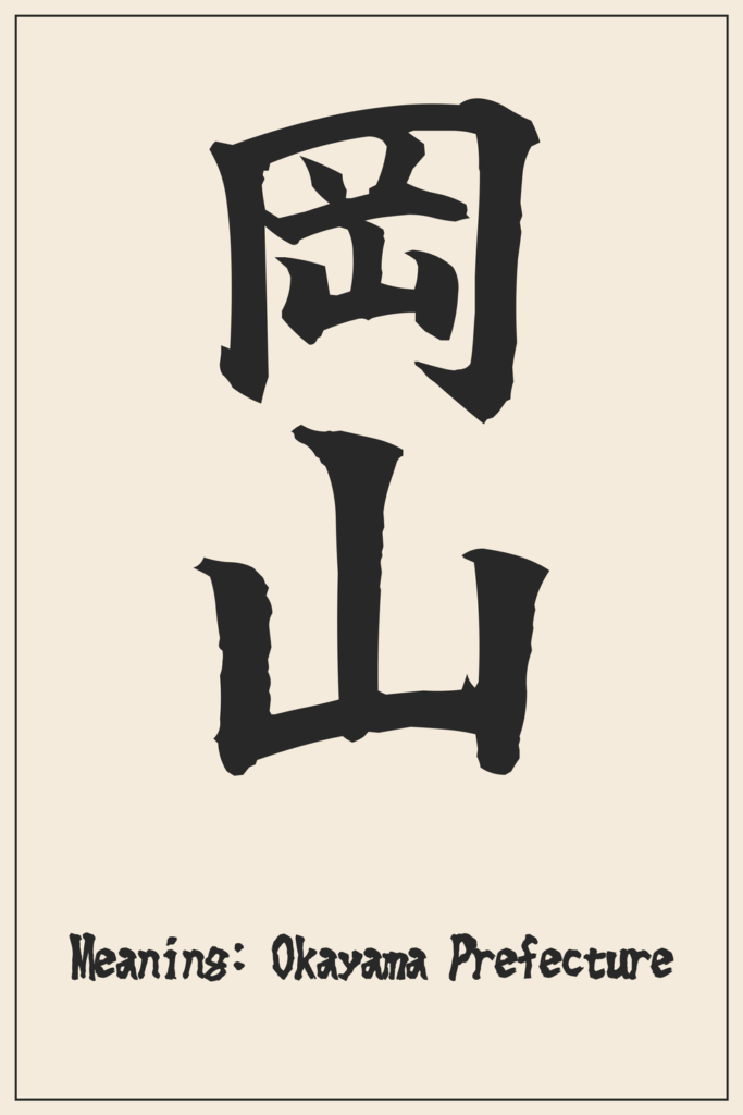 - 岡山 (Prefectura de Okayama) – Diseño kanji japonés