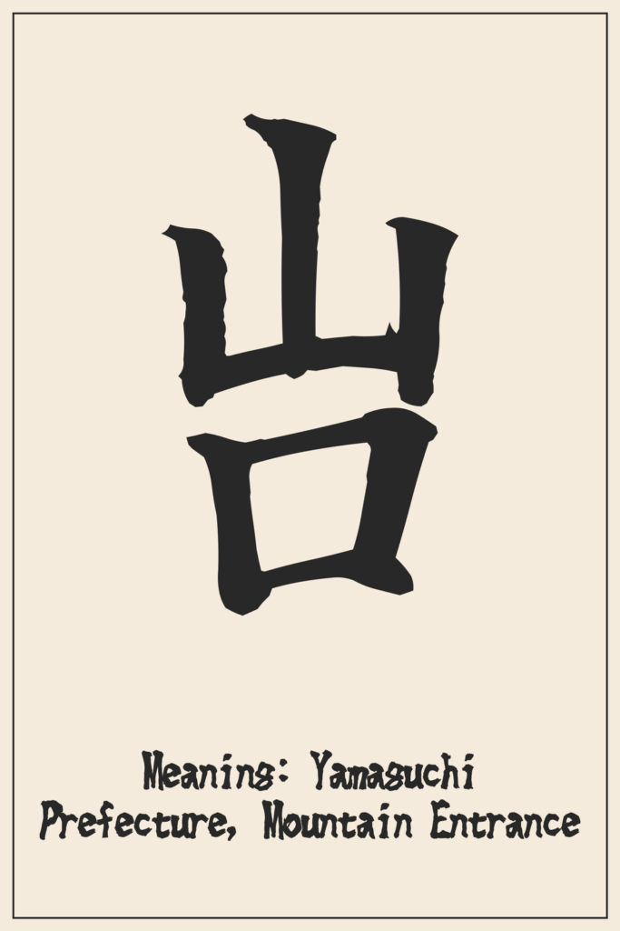- 山口 (Prefectura de Yamaguchi, entrada a la montaña) – Diseño kanji japonés
