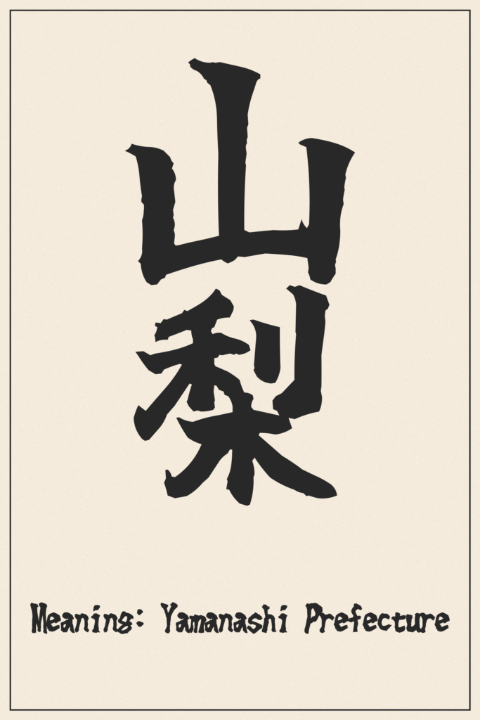 - 山梨 (Prefectura de Yamanashi) – Diseño kanji japonés