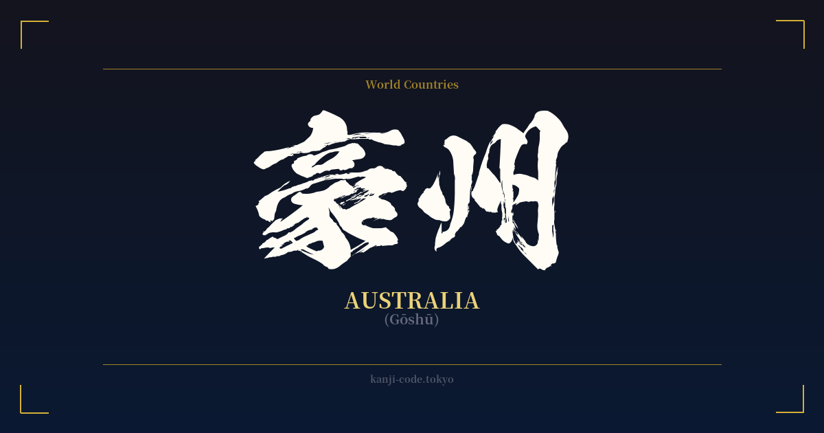 The term 豪州 (Gōshū) is the traditional Japanese kanji representation for the continent and country of Australia. It stands as a fascinating example of 'ateji' (当て字), a practice where kanji characters are used for their phonetic values to transcribe foreign words, often with a subtle nod to their meaning.