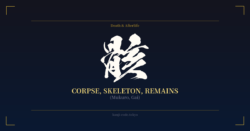 💀 Muerte y vida después de la muerte 骸 (cadáver, esqueleto, restos): significado y origen – Diseño kanji japonés