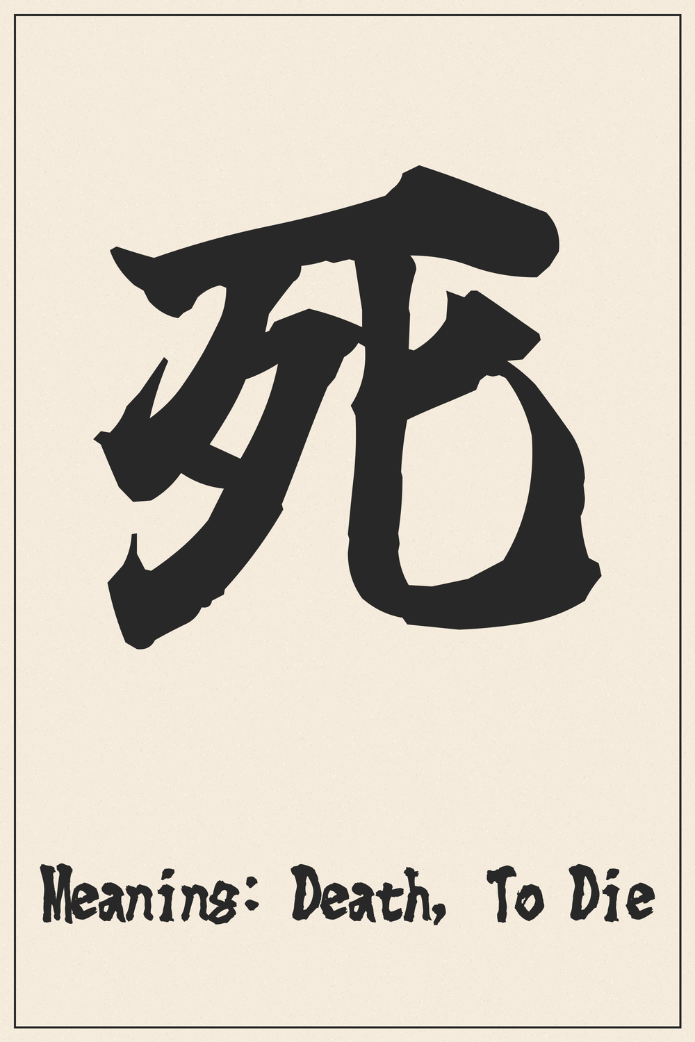 Significado: Representa ‘hueso’ o ‘muerte’. Este radical se encuentra comúnmente en personajes relacionados con la decadencia, el sufrimiento o el fin de la vida, lo que fundamenta a 死 en la realidad física de la mortalidad.