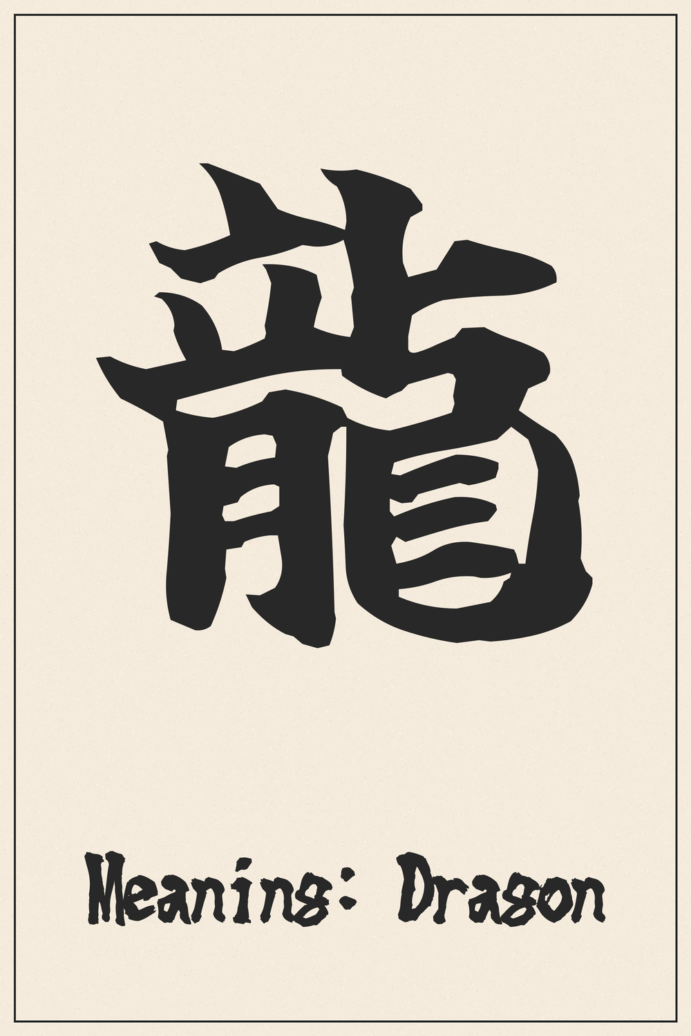 El kanji 龍 representa al poderoso y venerado dragón, que encarna la fuerza, la sabiduría, la buena suerte y una profunda conexión con las fuerzas naturales. Es un emblema atemporal de poder y benevolencia.