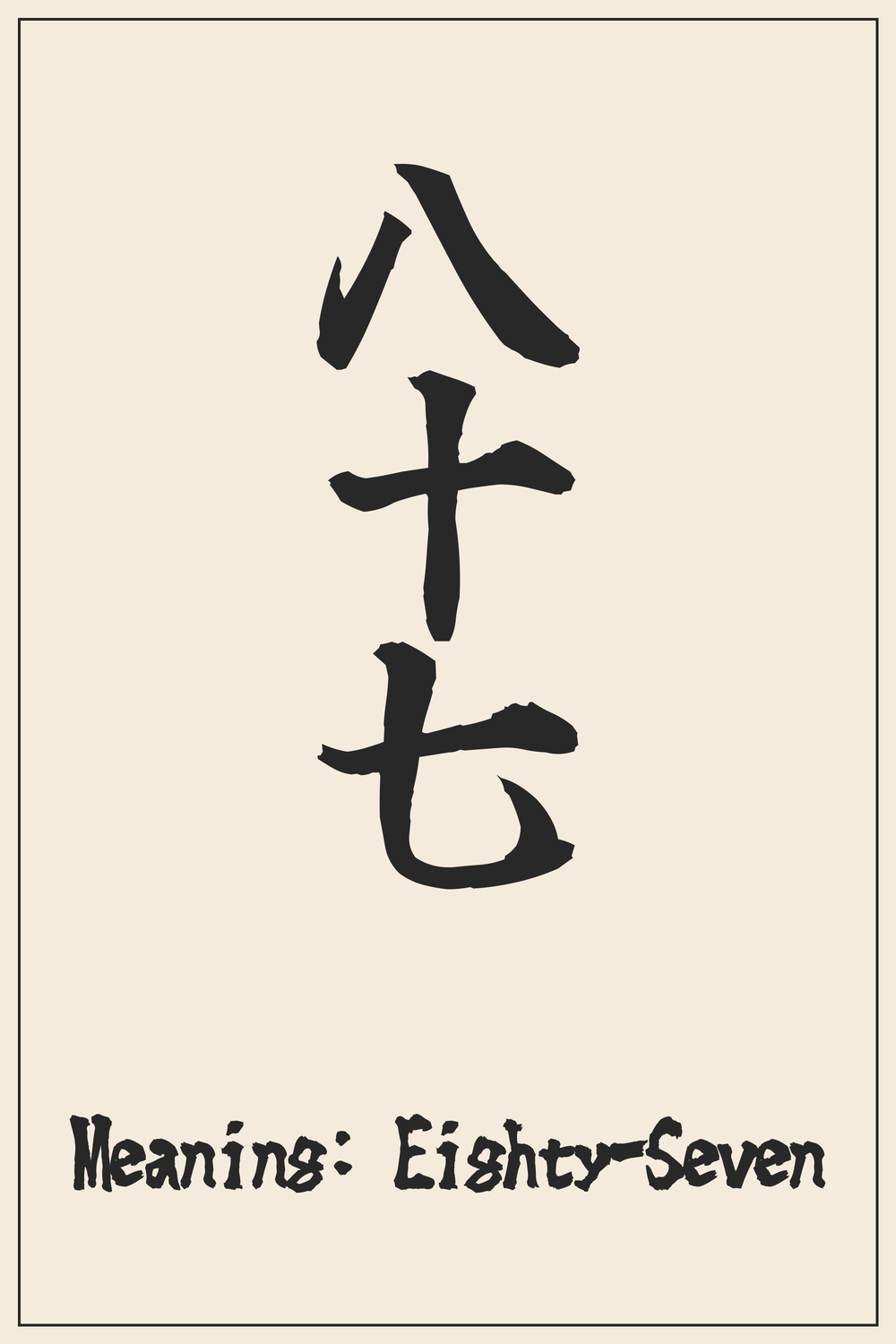 El kanji ‘八十七’ transmite con elegancia el número ochenta y siete. Es un testimonio de claridad y exactitud, lo que lo convierte en una opción única para un emblema profundamente personal que resuena con un valor numérico específico.