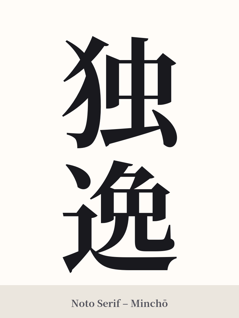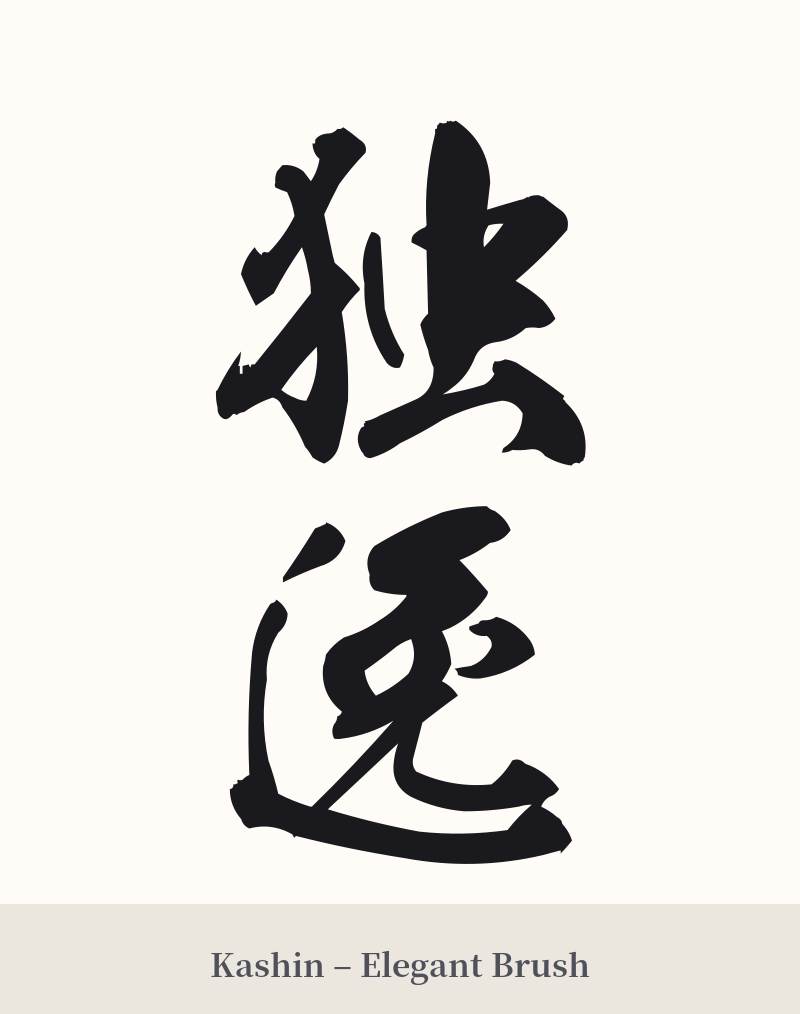 – Font Style: A classic, crisp Mincho (serif) font would complement its formal origins. For a more artistic and traditional feel, a semi-cursive (Gyosho) or standard script (Kaisho) calligraphy style would be excellent choices. Avoid overly modern or geometric fonts, as they would clash with the word's archaic feel.