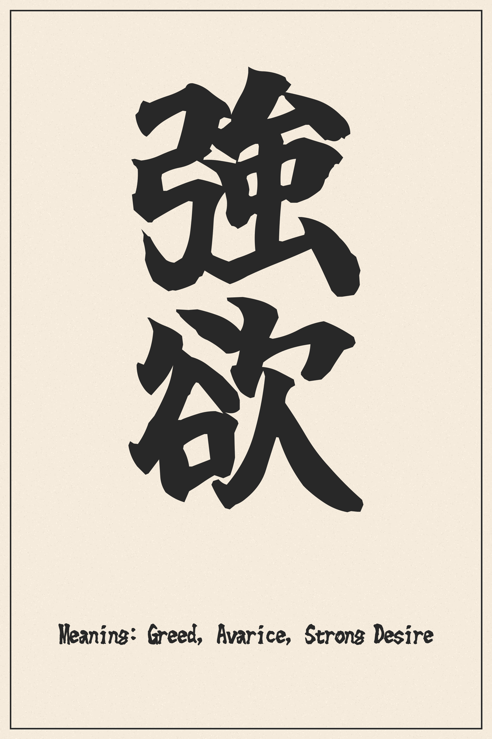 強欲 (Codicia, avaricia, fuerte deseo): significado y origen – Diseño kanji japonés