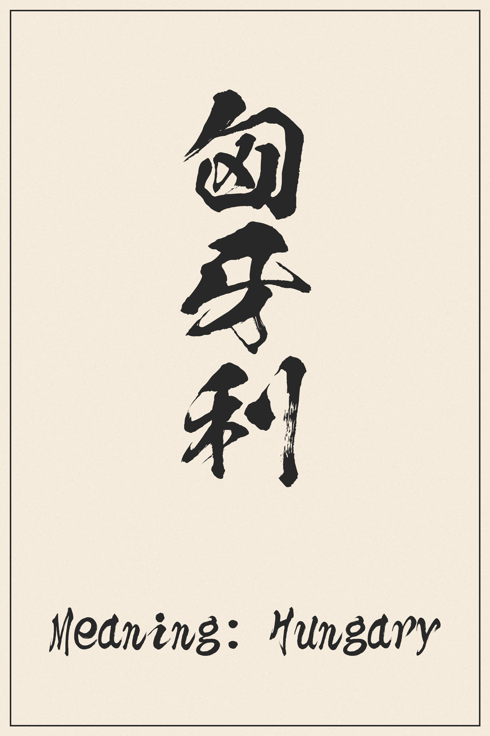 El kanji 匈牙利 (Hungarii) representa a la nación europea de Hungría. Es un ejemplo perfecto de ‘ateji’, donde los caracteres se utilizan por su sonido en lugar de por su significado intrínseco para transcribir palabras extranjeras.