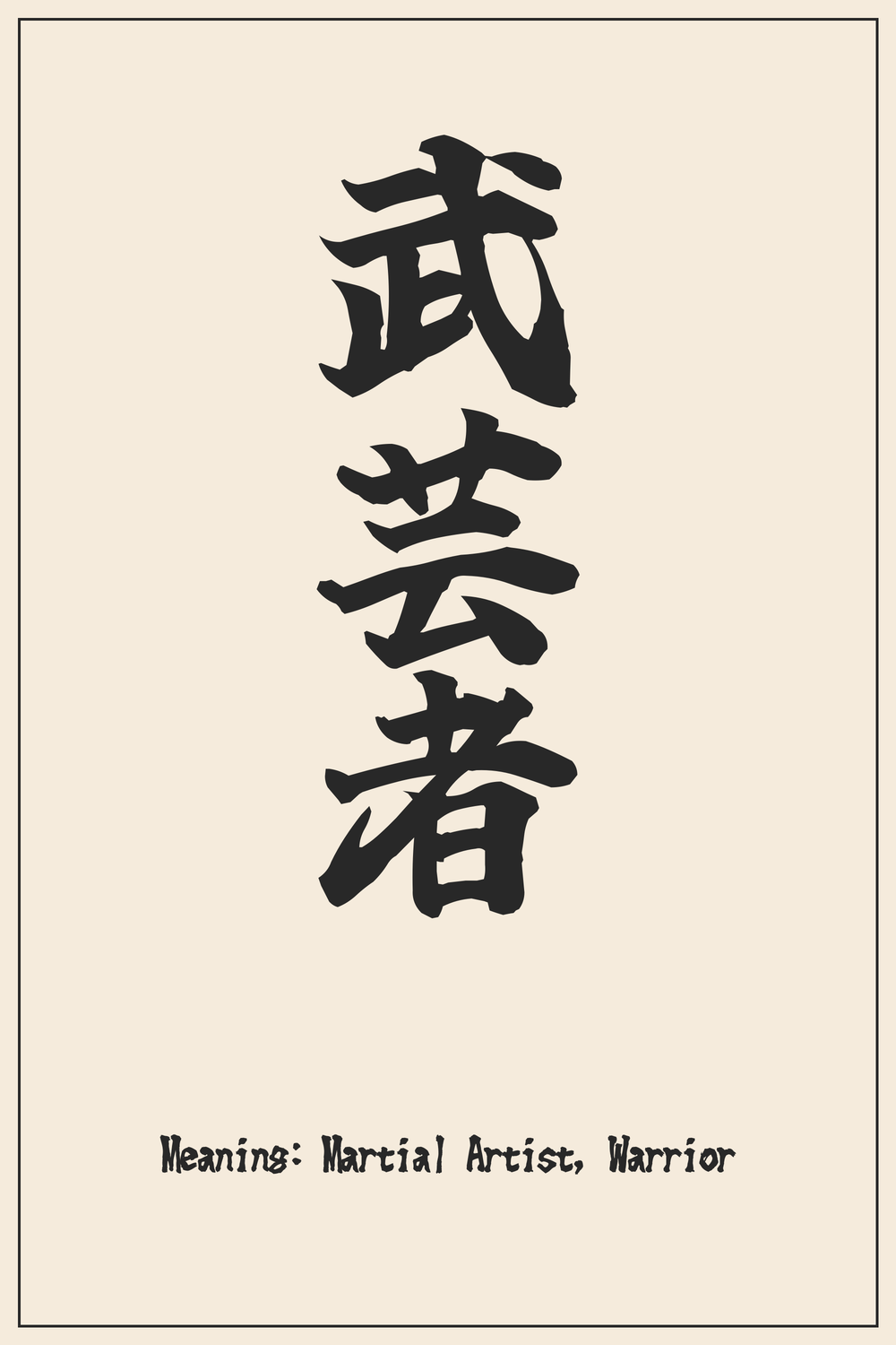 Persona, Aquel que hace/es: Un sufijo común en japonés, 者, simplemente significa ‘persona’ o ‘quien hace/es’. En este contexto, designa al individuo que encarna y practica las ‘artes marciales’ (武芸), completando así el significado de ‘artista marcial’.’