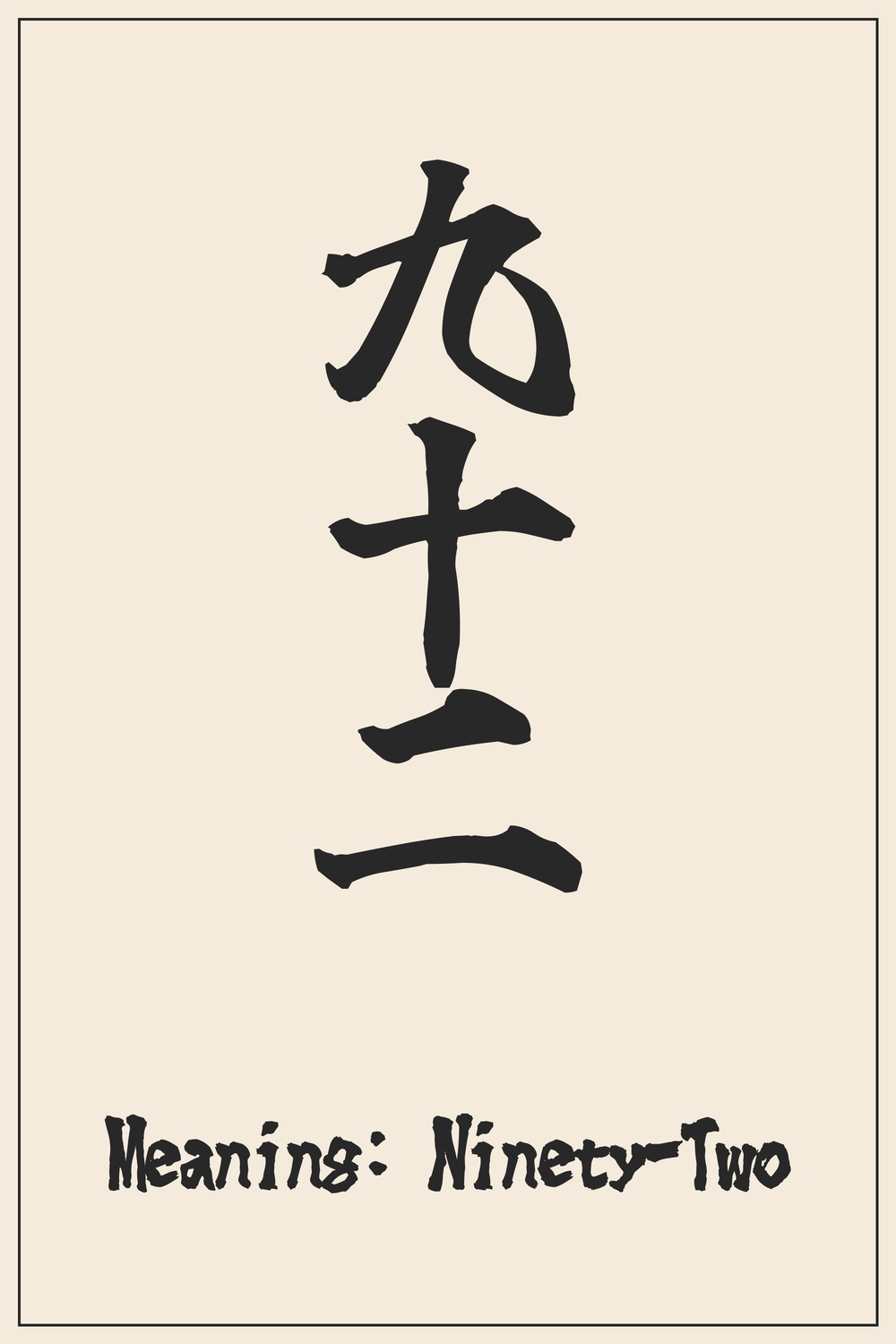 El kanji para ‘noventa y dos’ representa una cantidad específica, a menudo con un profundo significado personal. Puede simbolizar una edad significativa, una fecha memorable o un hito numérico en la vida.