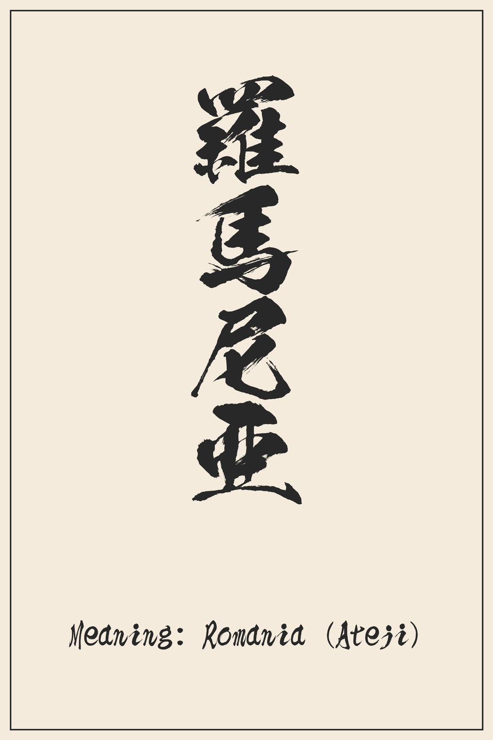 En este contexto, los caracteres 羅 (ra), 馬 (ma), 尼 (ni) y 亜 (a) reproducen en conjunto los sonidos de ‘Ro-ma-ni-a’. La elección específica de estos caracteres no implica ninguna conexión simbólica más profunda con Rumania; su función principal es facilitar la pronunciación a los hablantes de japonés.