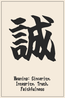 Virtudes y filosofía 誠実 (Sinceridad, Honestidad, Integridad) – Diseño Kanji japonés