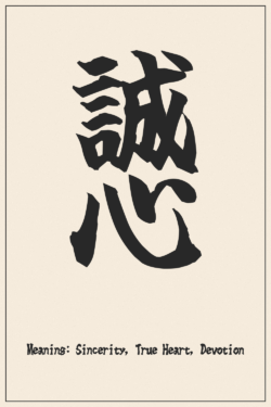 Virtudes y filosofía 誠心 (Sinceridad, Corazón Verdadero, Devoción) – Diseño de Kanji Japonés
