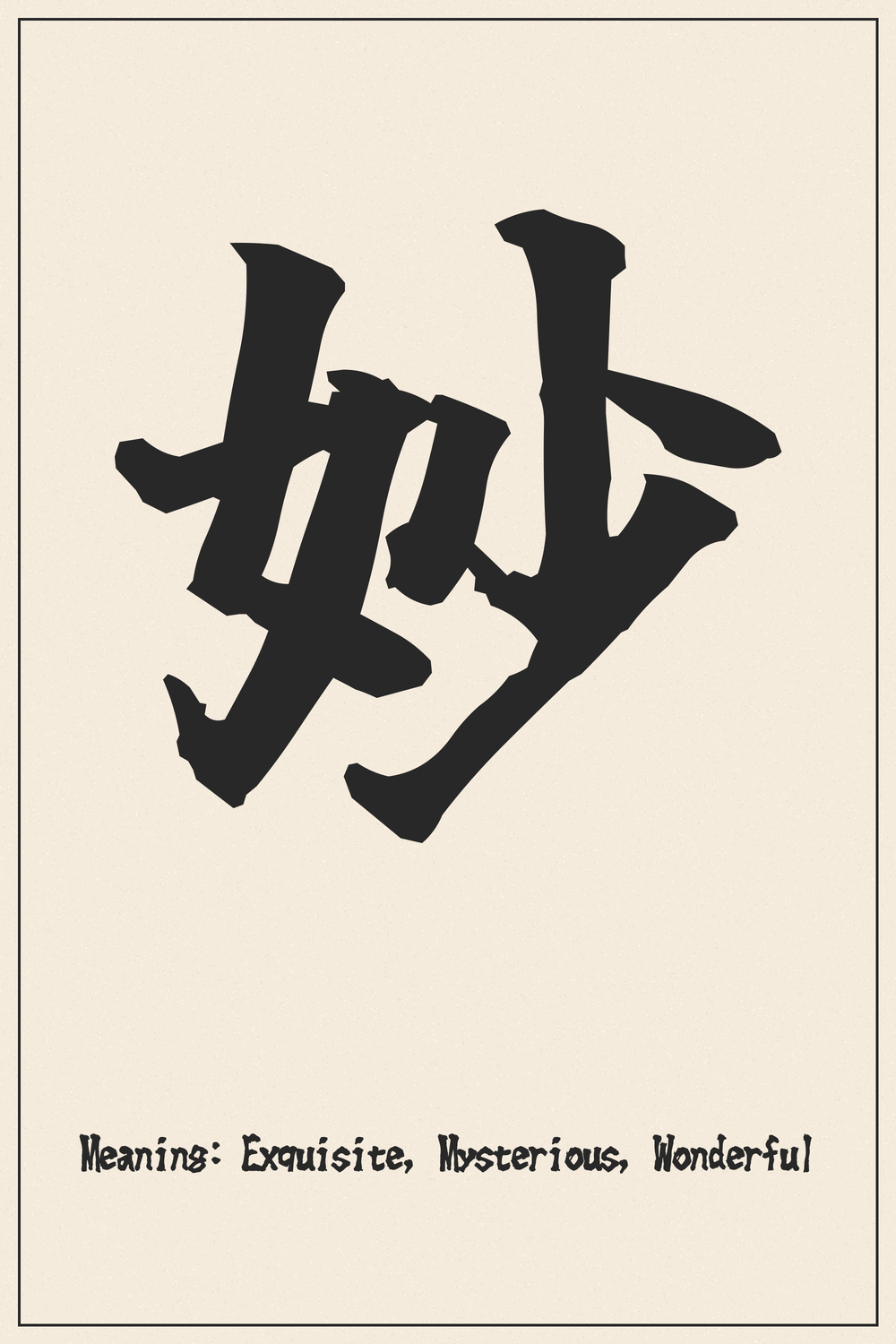 The Kanji 妙 (Myō) captures the essence of something truly extraordinary, blending mystery with exquisite beauty. It speaks to a profound subtlety that transcends the ordinary, inviting contemplation and admiration.