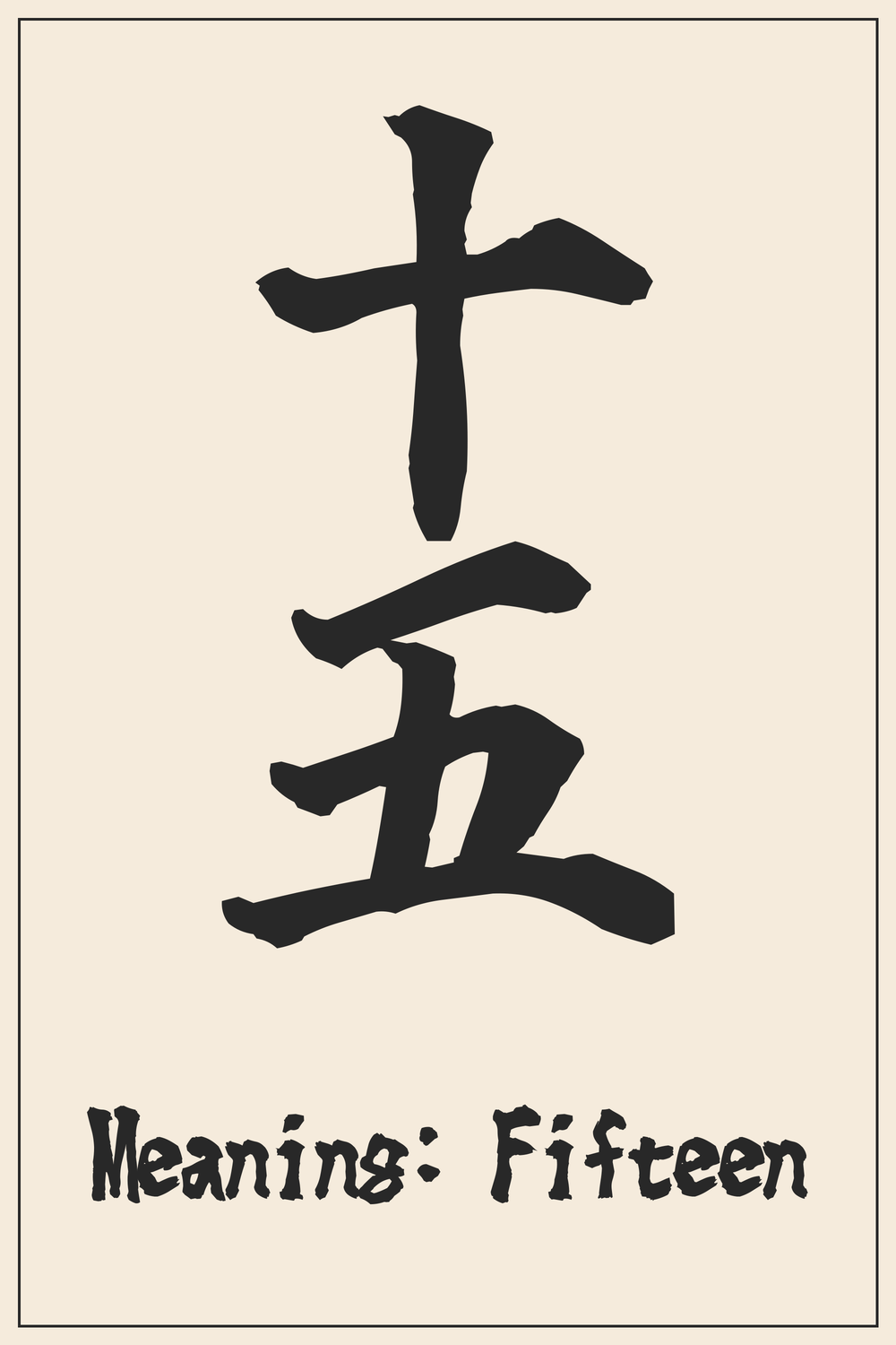 The compound ‘十五’ is formed by two fundamental numerical Kanji, each carrying its own distinct visual and conceptual clarity.