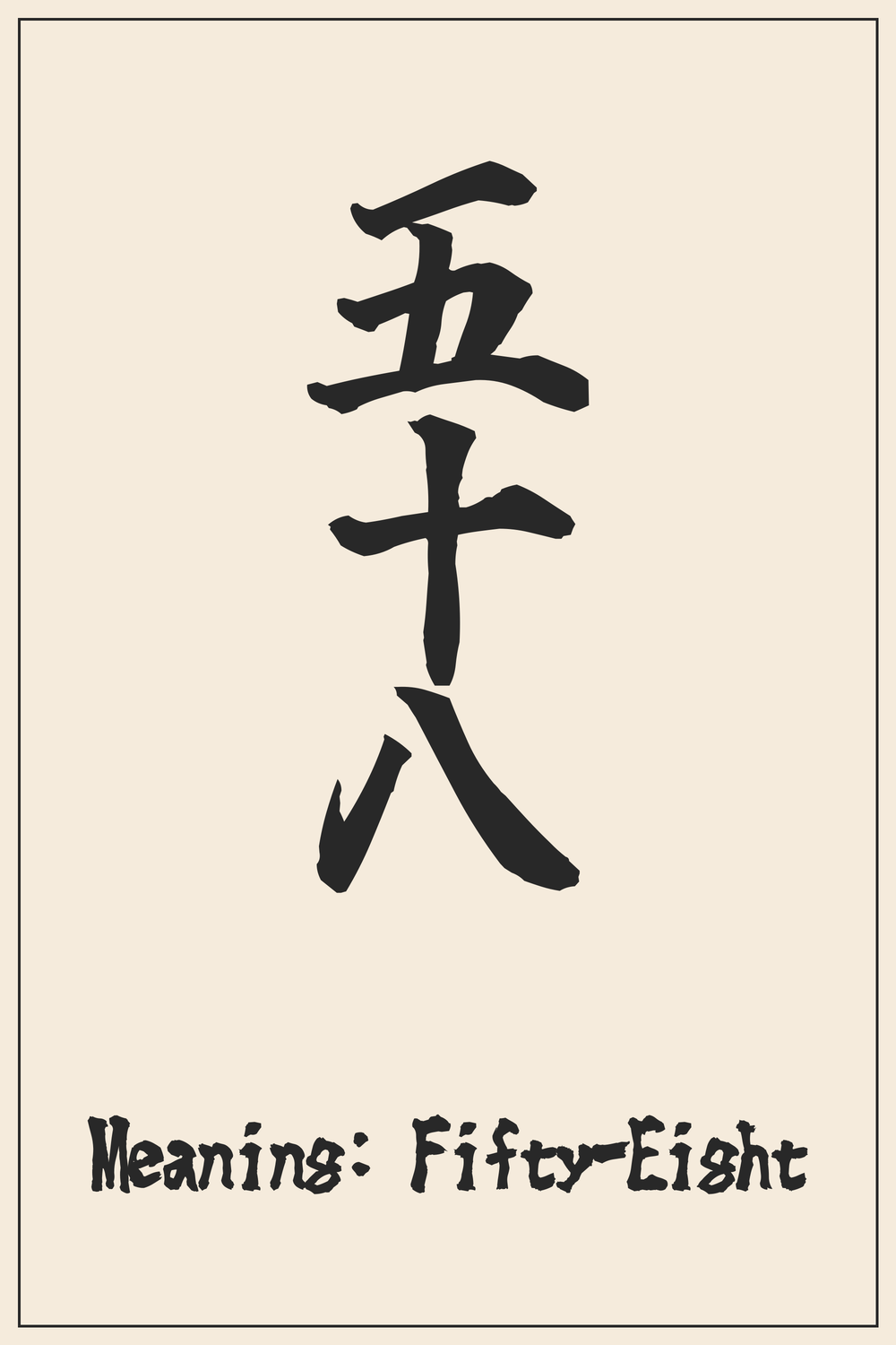 The Kanji compound “Gojuuhachi” (ไบๅๅ ซ) represents the number fifty-eight, a simple yet potent numerical value. In Japanese culture, numbers can carry specific associations, often tied to personal milestones or sequences.