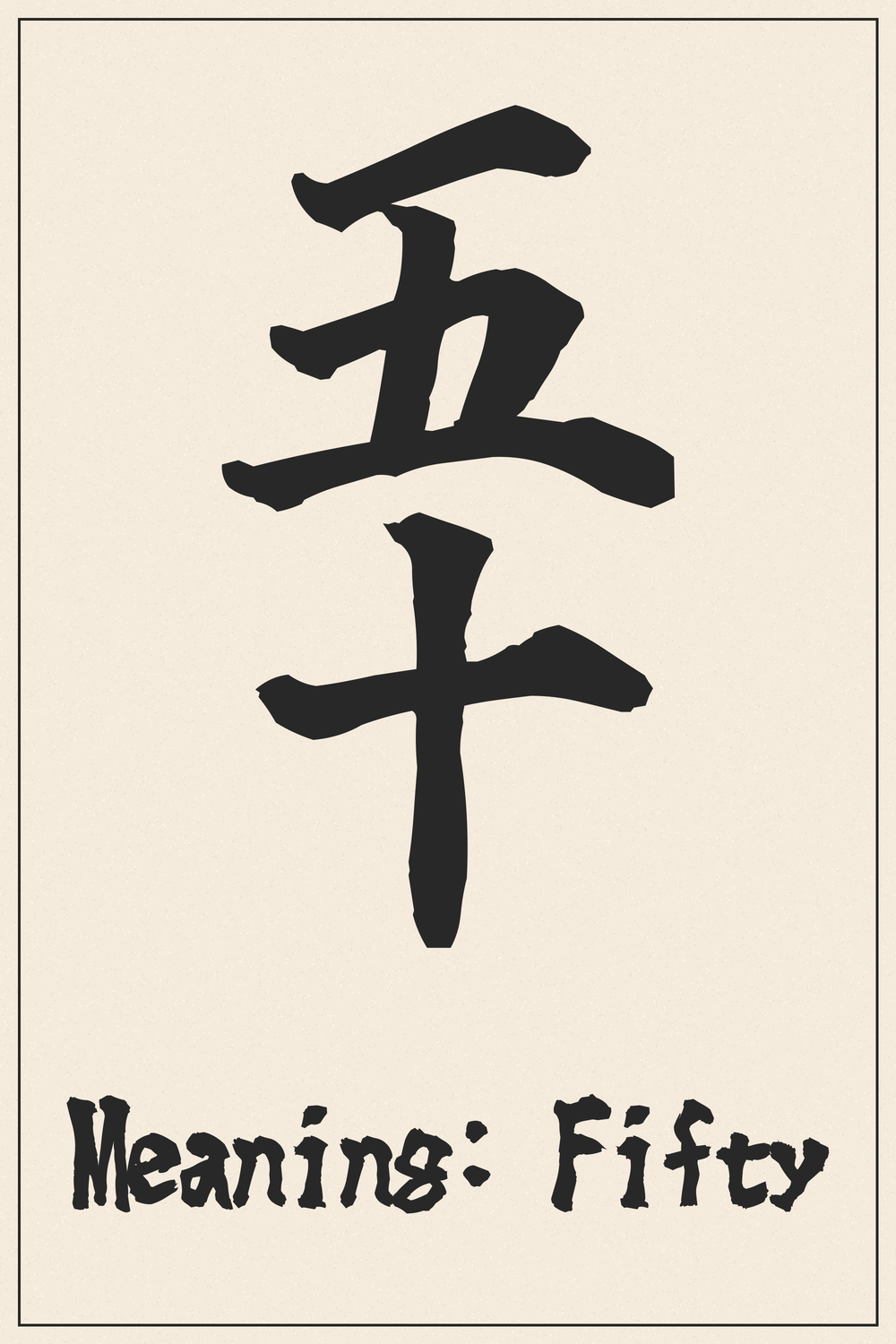 The Kanji for ‘fifty’ might seem straightforward, yet it represents a significant numerical milestone in various cultural contexts. This symbol encapsulates the passage of time and the accumulation of experience.