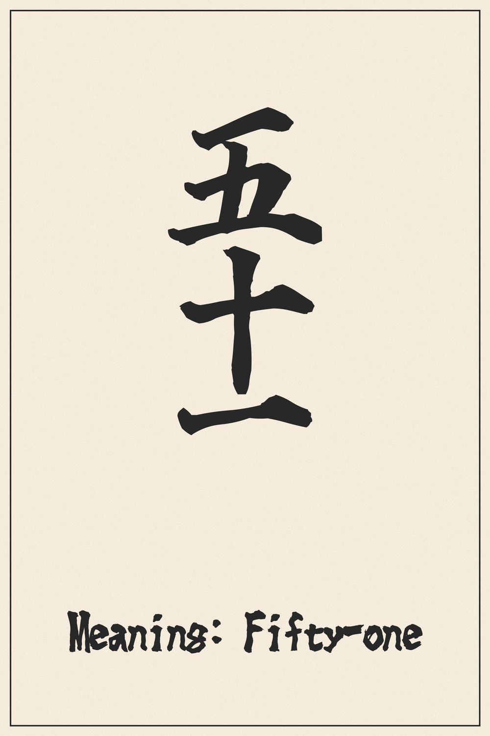 Numbers carry universal significance, marking milestones and personal journeys. The Kanji 五十一, representing ‘Fifty-one’, embodies a specific point in time or quantity with quiet precision.