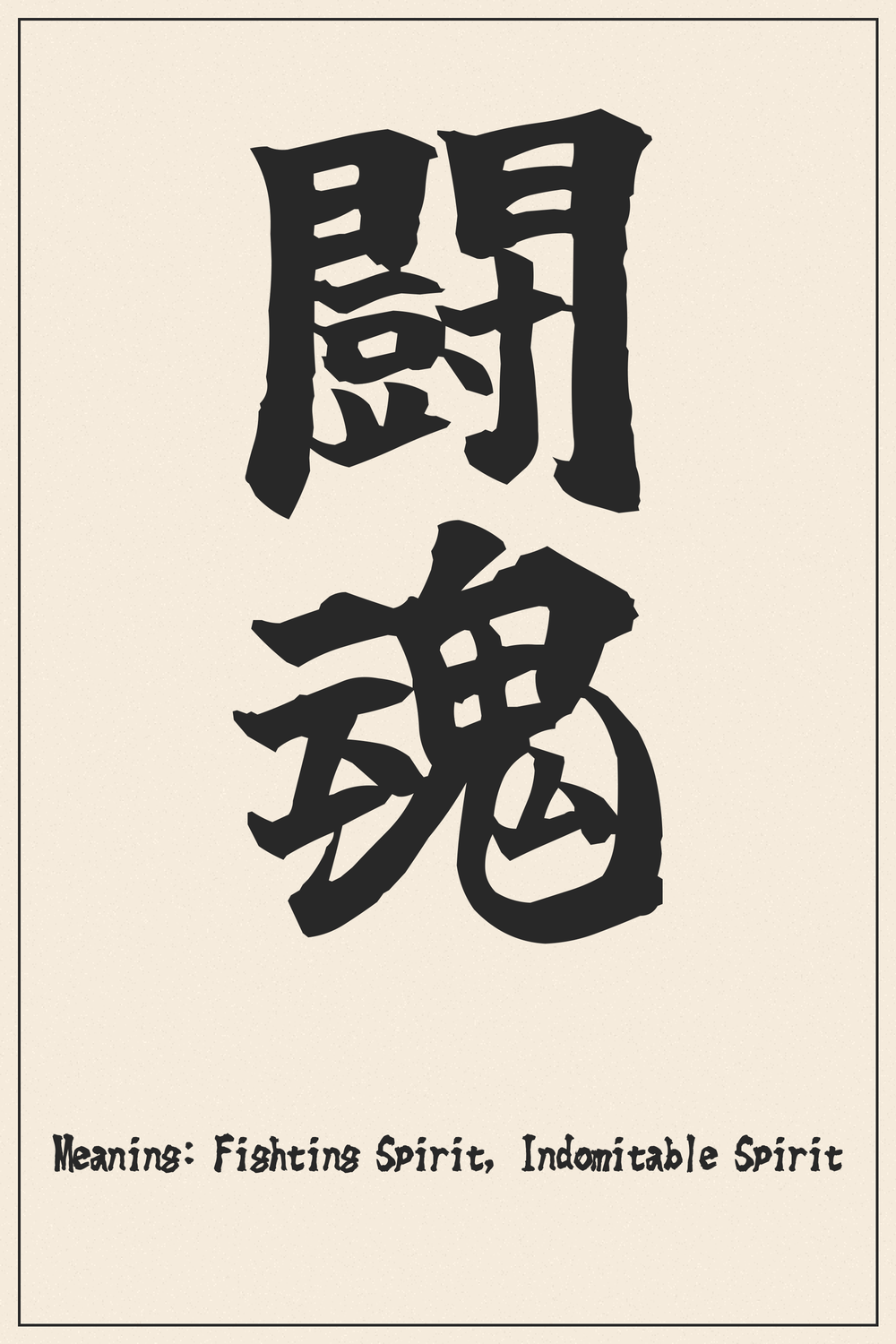 闘魂 encapsulates the formidable spirit that drives individuals to overcome adversity with unwavering courage and determination. It represents an enduring inner fire that refuses to be extinguished, regardless of external challenges.