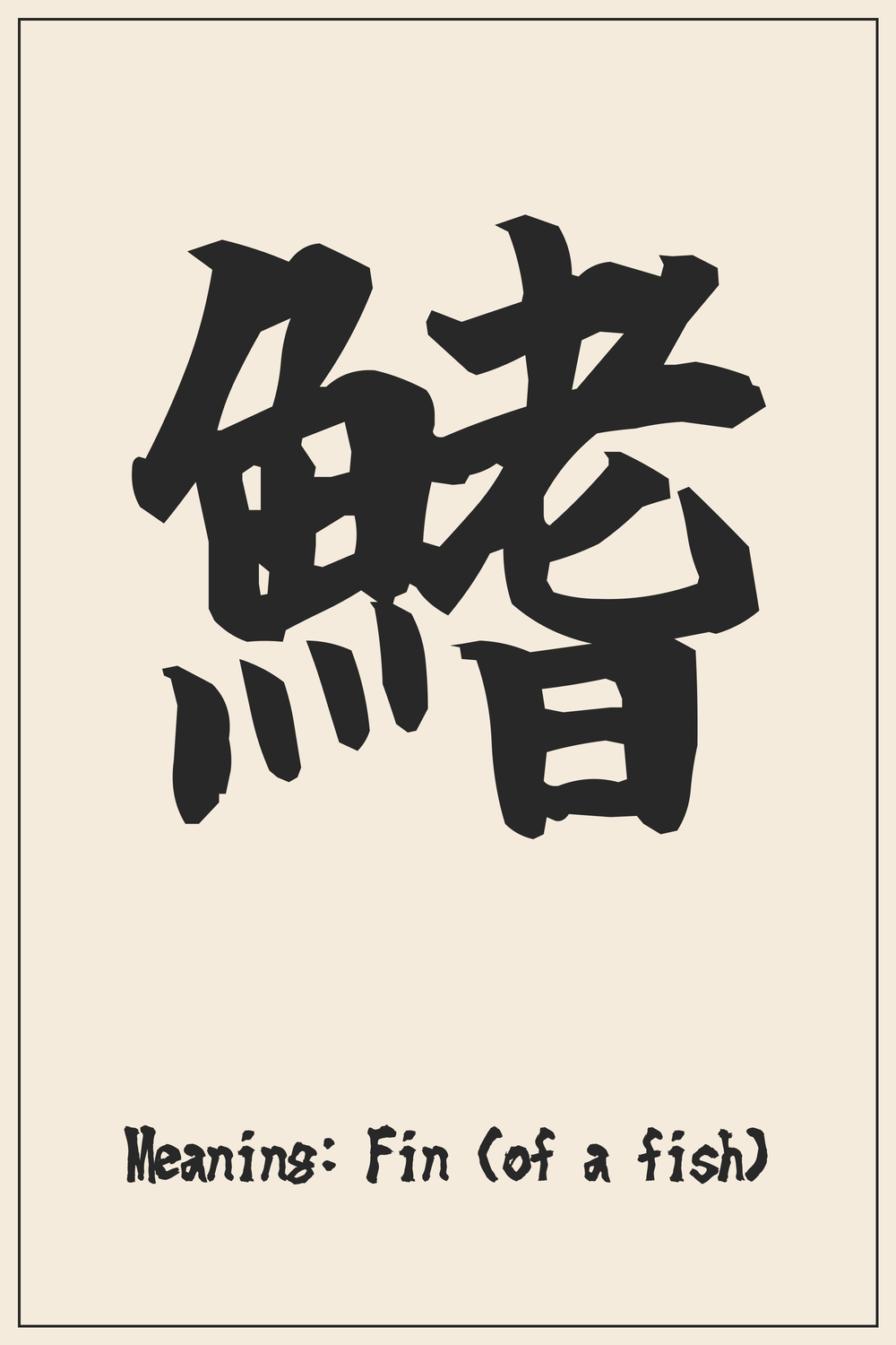 The kanji 鰭, pronounced ‘hire’, embodies the essence of aquatic movement and life. It captures the dynamic elegance of fish, representing the vital structures that propel them through water.
