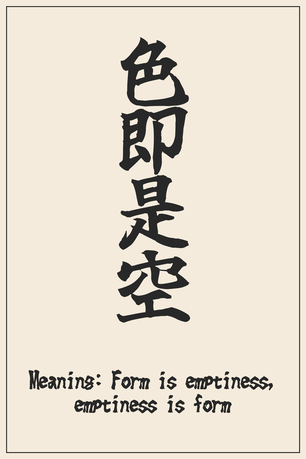 The phrase 色即是空 (Shikisokuzekuu) originates from the Prajnaparamita Hannya Shingyo, commonly known as the Heart Sutra, one of the most revered texts in Mahayana Buddhism. It is a concise and profound distillation of Buddhist teachings on the nature of reality, primarily addressing the concept of shunyata, or emptiness.