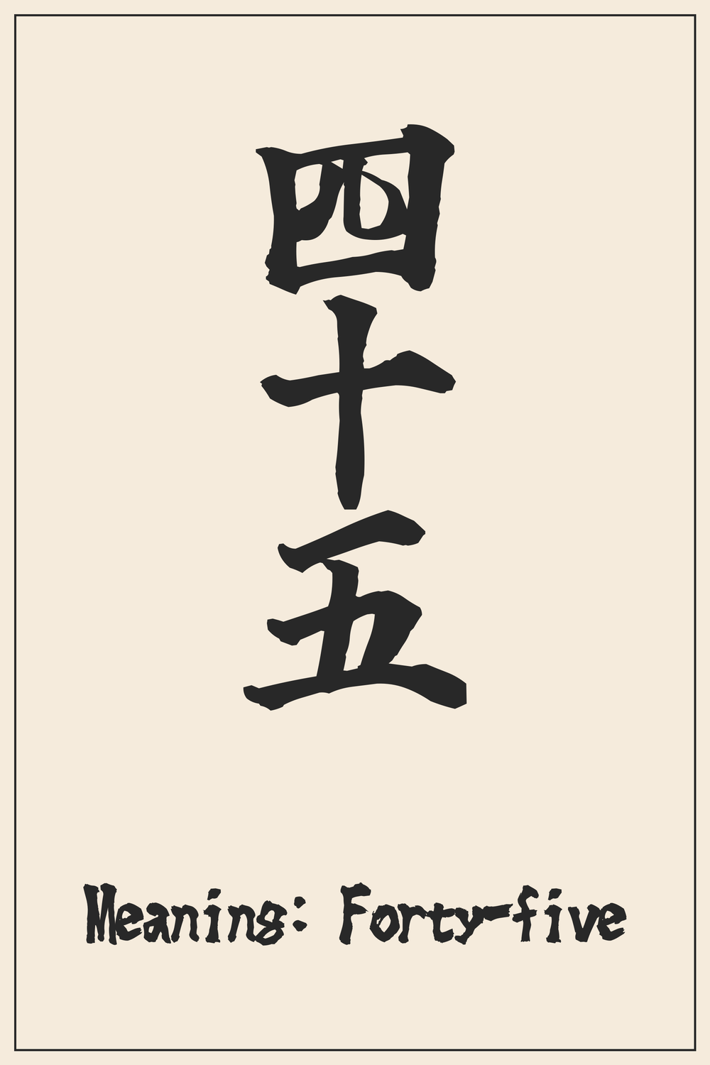 Numbers, in their stark simplicity, often carry profound personal significance, marking milestones or representing cherished counts. The Kanji for ‘Forty-five’ (四十五) precisely conveys such a value, offering a direct yet meaningful emblem.