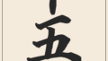 The Kanji 十 (jū) means ‘ten’, represented by a cross shape historically derived from tying ten knots. The Kanji 四 (shi/yon) means ‘four’, visually depicting the four sides of a square or division into four parts.