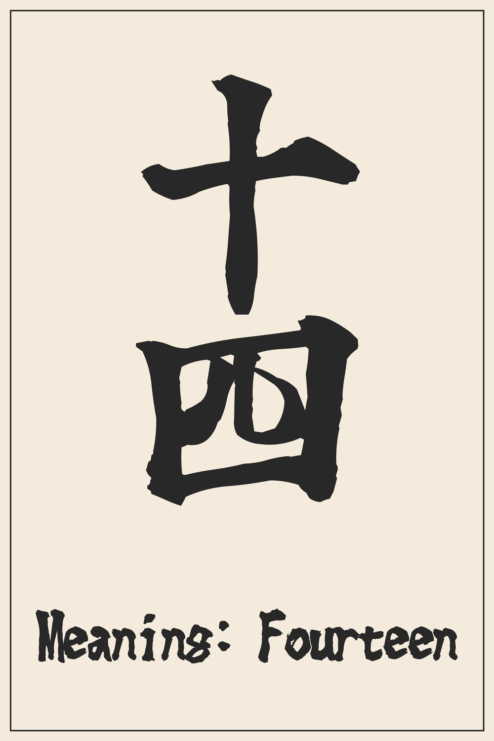 The Kanji 十四 is a compound number, formed by combining two fundamental numerical characters.