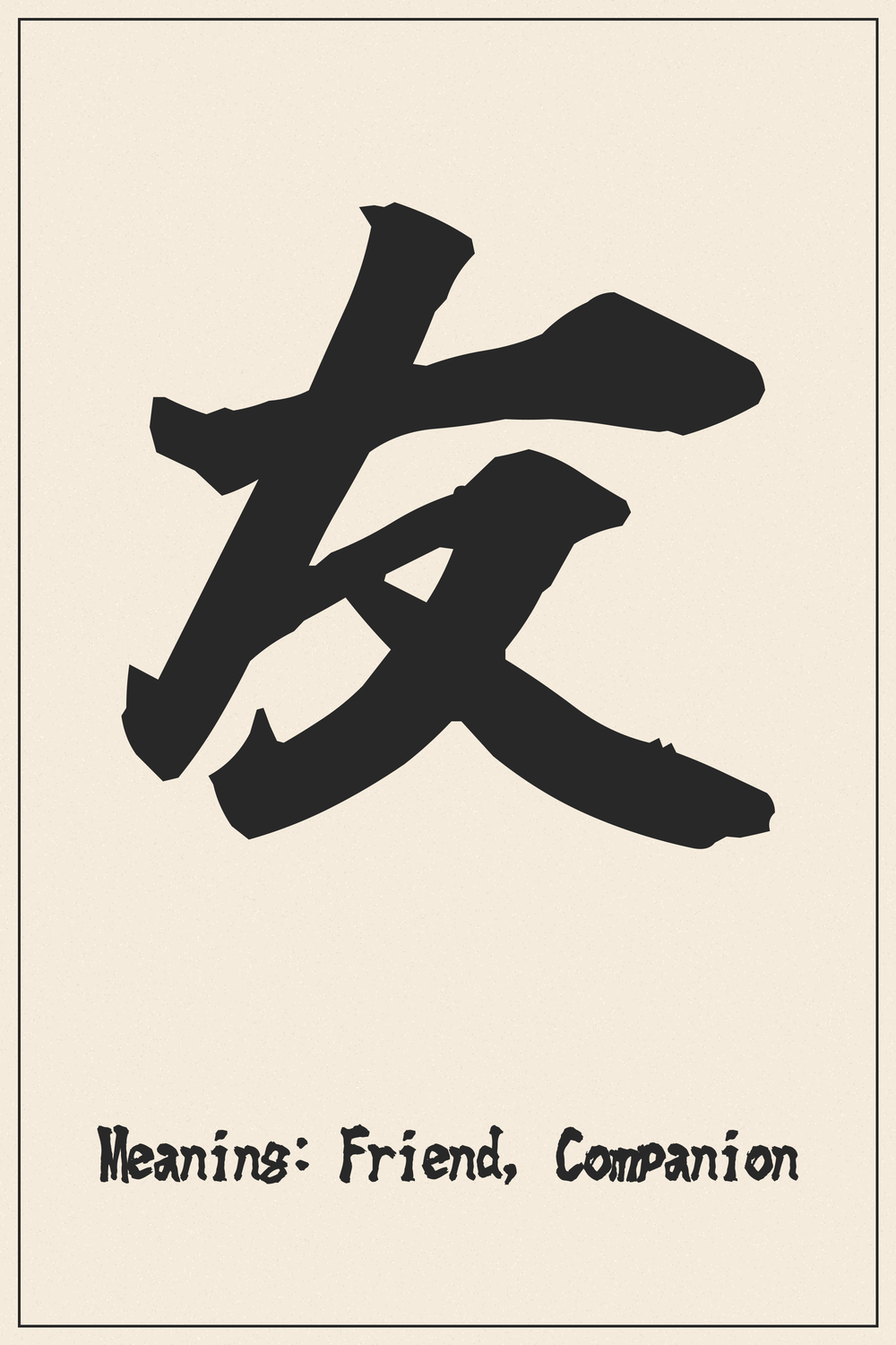 Meaning: The character ‘友’ (tomo) itself depicts two hands joined or working together, symbolizing companionship and mutual assistance. Its radical is 又 (mata), often interpreted as a hand.