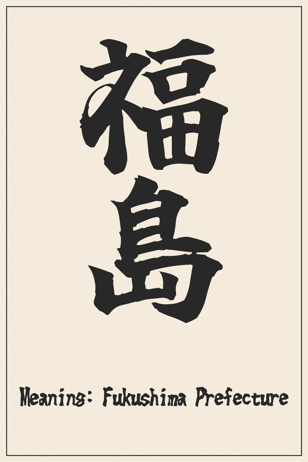 The kanji Fukushima (福島) beautifully combines “luck” and “island,” creating a meaning that is both literal and symbolic of a blessed region. It signifies a place of good fortune, resilience, and unique natural charm.