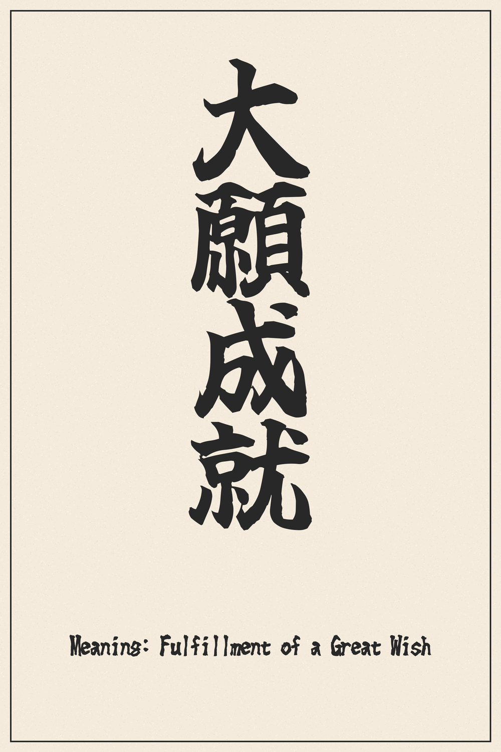 For those who seek to commemorate their greatest ambitions or remind themselves of the power of their deepest desires, “大願成就” serves as an exceptional and inspiring Kanji tattoo choice, a constant reminder to strive for and achieve the extraordinary.