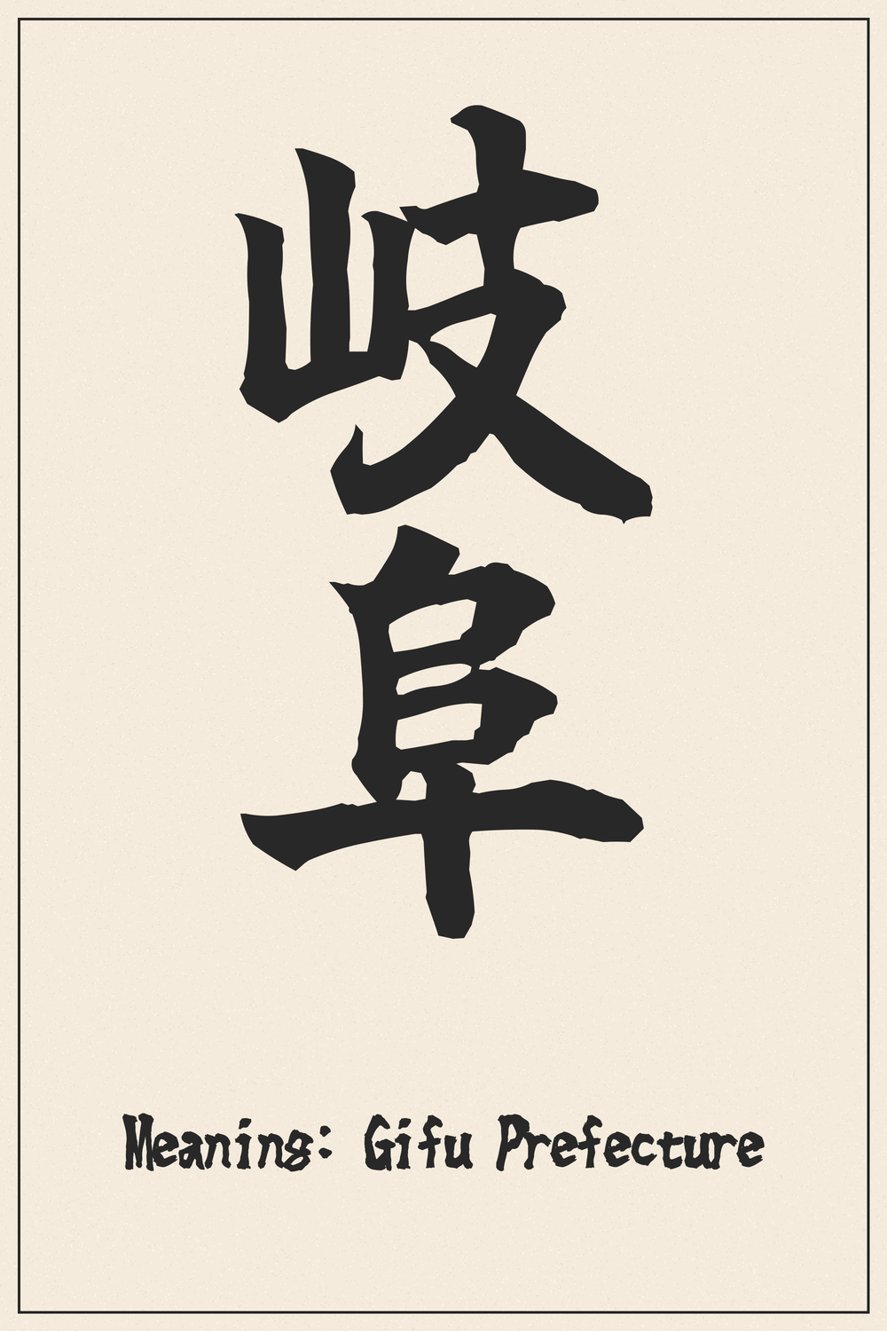 This Kanji provides a compelling and aesthetically balanced choice for those who wish to honor their roots, commemorate a memorable journey, or simply admire the profound heritage and beauty of Japan’s Gifu Prefecture.