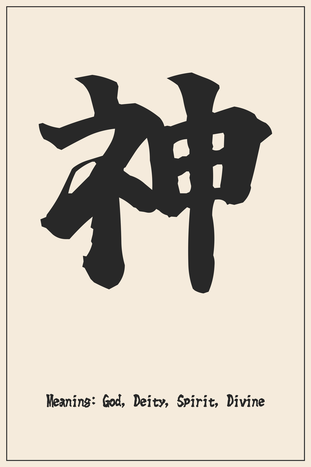 The Kanji 神 is a profound symbol, embodying the essence of the divine, spiritual strength, and sacred presence. It represents a connection to something greater than oneself, be it a deity, the spirit of nature, or an inner spiritual power, making it a powerful statement of belief and reverence.